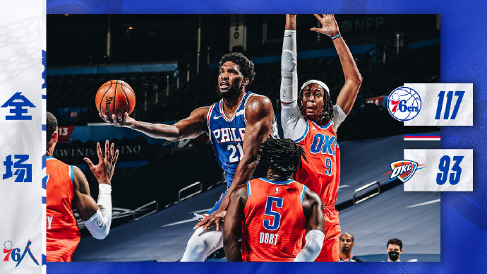 76人(36-17):恩比德27分9板4助4帽,科克马茨20分4板5断,西蒙斯13分3板3助,库里11分4板6助,马克西7分5助,米尔顿12分,斯科特13分2板,霍华德3分13板2帽,里德3分,琼斯3分