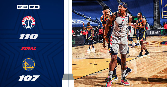 奇才(19-32):比尔20分6助、八村塁22分5板、洛佩兹20分8板、威少19分14板14助、莱恩15分5板