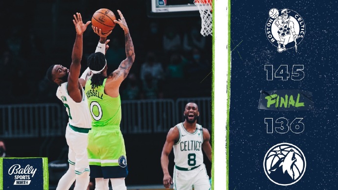 24直播网4月10日讯 NBA常规赛,凯尔特人今日迎战森林狼,前者上场比赛险胜尼克斯排在东部第七,后者则是输给了步行者继续在西部垫底,本场比斯利缺战,拉塞尔继续替补。比赛上来两队就展开拉锯,不过在首个暂停之后凯尔特人的命中率开始下降,森林狼则越投越准,分差被逐渐拉开到了两位数,次节塔图姆发挥出色连续得分,但球队的糟糕防守让追分变得十分困难,半场结束时森林狼领先9分。易边再战,凯尔特人终于是找到状态,多次发起反扑,并利用森林狼在三节末段命中率下降的时机追上比分,末节更是一举实现反超建立起两位数的领先优势,但顽强的森林狼此后再次追平比分,关键时刻塔图姆绝杀球不中比赛进入加时,加时赛凯尔特人没有再给对手任何机会,火热的外线手感帮助他们一直保持领先,最终凯尔特人经过加时逆转森林狼。
