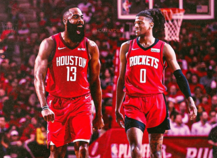 哈登曾公开盛赞杰伦-格林,表示:我为他(杰伦-格林)感到骄傲,他不仅没有辜负大家的期望,而且每一场比赛他都非常自信。