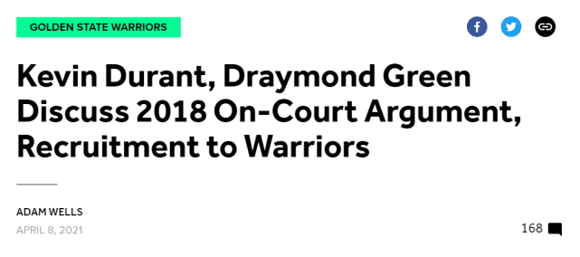 往事如风,杜兰特和格林如今早已化解昔日的矛盾,重新回到朋友的状态。他们之间的确发生过不快,但他们也曾经一起拿下两座总冠军,这次杜兰特邀请追梦来参加自己的节目,更说明他们目前的关系已经没问题了。