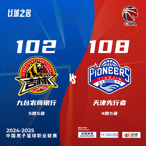360直播吧11月3日讯 CBA常规赛,吉林主场迎战天津,吉林目前5胜4负,而天津3连败后3胜5负。比赛开始,琼斯接连送出助攻后接连攻筐取分,带领吉林打出20-6梦幻开局,林庭谦一攻一传帮助天津回应8-0止血,首节吉林领先7分,次节吉林重新拉开双位数领先,但郑昊燃接连三分再次止血,琼斯和姜伟泽也能三分强势回应,双方展开拉锯战,半场吉林领先到11分。下半场,吉林进攻端有些断电,天津外线多点开花连中5记三分一度反超比分,琼斯站出来里突外投连砍11分强势回应,三节结束双方打成78平,末节琼斯继续撑起球队进攻,但林庭谦有攻有传联手大卫-詹姆斯再次反超回来,比赛进入白热化,李宗霖关键三分,最终天津108-102力克吉林。