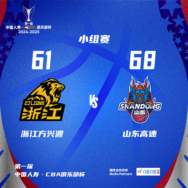 360直播吧11月12日讯 CBA俱乐部杯烟台赛区,广厦对阵山东,本场比赛孙铭徽、胡金秋和高诗岩等双方多名主力不打。比赛开始,双方上来十分慢热,半节多比赛广厦得到5分,山东得到4分,随后广厦外援布朗接连取分,首节广厦领先4分,次节广厦进攻端突然陷入得分荒,打了半节多仅得3分,克里斯联手陈培东接连取分帮助山东半场反超1分。下半场,于德豪接连三分命中,但双方整体命中率还是一般,比分持续胶着,山东还是保持微弱领先,于德豪单节4记三分助队领先到7分,末节双方展开拉锯战,布朗和奈特继续帮助广厦追分,但刘毅成为奇兵能给出回应,山东始终保持两球以上领先,最终山东68-61力克广厦。