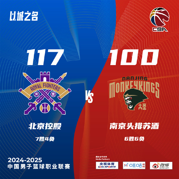 北控(7-4):里勒38分10板5助5断,邹雨宸17分10板2助2断2帽,朱松玮11分4板7助,特莱斯10分5助,陈国豪10分3板,沈梓捷9分2板,萨林杰5分6板3助,刘晓宇8分4助;