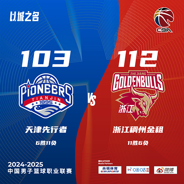 360直播吧讯北京时间12月13日讯 CBA常规赛,天津对阵浙江,天津最近状态不佳遭遇4连败,浙江则是状态不错取得2连胜。开场后余嘉豪和琼斯轮番在内线打进帮助浙江取得领先,林庭谦带领天津努力追分。第二节浙江外线也找到手感连中三分,场上分差被拉大到两位数,大卫-詹姆斯开始发力接连砍分,浙江这边巴斯也连续拿分回应,上半场打完,浙江领先16分。易边再战,浙江多点开花一度将分差拉大到21分,但随后天津掀起反扑又将分差缩小。最后一节两队手感都不理想,场上分差一直在10分左右拉锯,天津未能完成翻盘,最终浙江112-103击败天津取得3连胜,天津遭遇5连败。