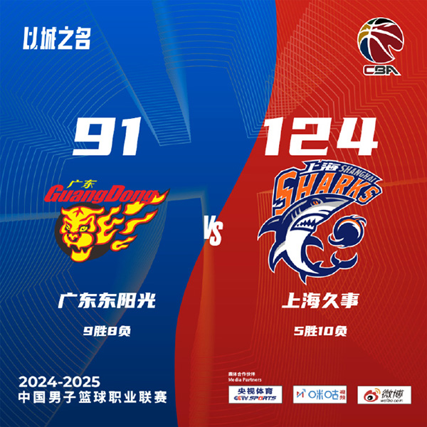 360直播吧讯2024年12月14日讯 CBA常规赛,广东今日迎战上海,前者近来取得两连胜,后者则是三连胜,并且三场赢了101分。比赛上来,广东率先进入状态打出7-0的完美开局,但上海此后及时调整追了回来,首节后半段广东更是陷入到得分荒,上海轰出一波11-0取得领先,次节广东的情况依旧没有好转,除了徐杰和吉伦沃特其他人难有发挥,分差也是被扩大到二十分以上,半场结束时上海领先19分;下半场回来,广东的命中率有所提升,但依旧无法限制对手的攻势,上海连续第三节单节得分破30分,分差也是一直保持在二十分左右,比赛在末节早已失去悬念,最终上海大胜广东迎来四连胜。