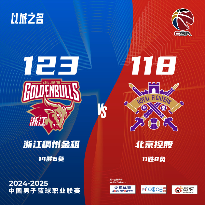 360直播吧讯12月20日讯 CBA常规,浙江对阵北控。浙江13胜6负,北控11胜7负。据统计,浙江保持着对北控的11连胜。一开场,双方开场短暂相持,邹雨宸连续暴扣引领球队13-2的攻击波取得两位数优势,浙江迟迟找不到状态,次节北控持续发力将分差拉开到20分,此后浙江展开反击,西蒙斯独得10分带队迅速迫近比分,朱松玮连得8分稳住局势,半场战罢北控65-56领先浙江。易边再战,浙江奋力反击不断蚕食分差,吴前三分扳平,此后双方展开拉锯战,比分交替领先,末节浙江持续发力取得领先,刘泽一攻防两端立功,最终,浙江123-118逆转北控,豪取对对手的12连胜。
