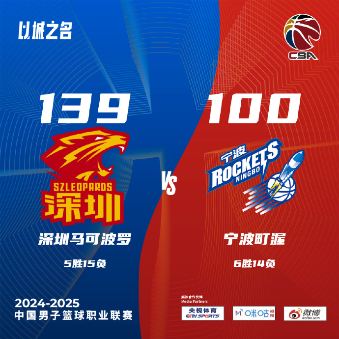 360直播吧讯12月20日讯 CBA常规赛,深圳对阵宁波,深圳上场比赛惜败上海,宁波最近遭遇4连败。开场后汤普森在内线表现强势,宁波先发外线手感不错连连命中三分,周鹏替补登场后首节独得10分帮助深圳扩大优势。第二节汤普森在内线依旧予取予求,马凯尔-约翰逊和威姆斯也开始发挥,深圳连连打出攻势将分差拉大到20分,宁波也主要依靠外援追分。易边再战,汤普森上来依旧状态火热连连远投命中,宁波虽然没能缩小分差,但也没有让分差继续被拉大。不过第四节深圳全面开花单节再度打爆宁波,场上分差一路被拉大,最终深圳139-100大胜宁波,宁波遭遇5连败。