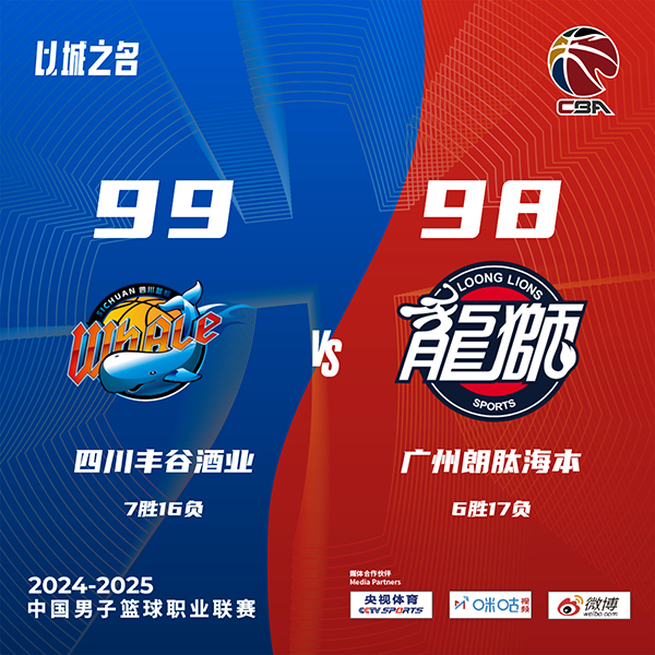 360直播吧讯北京时间12月28日讯 CBA常规赛继续进行,四川主场迎战广州,两队战绩同为6胜16负,广州近期苦吞6连败,四川上场不敌广厦。首节开打后双方互相试探,广州率先进入状态一度占优,但萨姆纳早早发力连续取分,四川回敬14-2攻击波后来居上,首节结束时四川领先7分,次节回来,萨姆纳不断杀伤罚球涨分,无奈其他队友状态低迷,广州抓住机会不断缩小分差,半场战罢,四川优势仅剩2分。易边再战后两队陷入鏖战,萨姆纳无人可挡单节狂揽22分,沃伦联手道格拉斯及时回应,三节结束后四川依然领先4分,末节决战,双方交替领先鏖战至最后时刻,王云章抢断反击打进,沃伦出现致命失误,亨特两罚不中但焦泊乔仓促绝杀未果,最终四川99-98险胜广州送对手7连败。