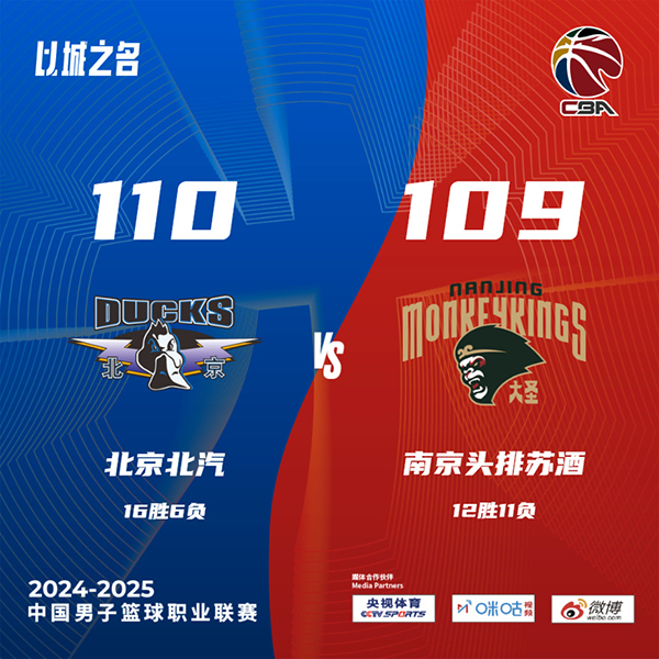 360直播吧讯北京时间12月28日CBA常规赛,半场北京56-51同曦,林葳在最后时刻干拔三分未中,祝铭震抢到篮板球后抛投,可惜球弹出篮筐,南京错失绝杀机会。最终北京110-109同曦。北京北汽陈盈骏17分9助,理查德-所罗门17分1助;南京头排苏酒林葳32分7助,赵柏清17分1助。