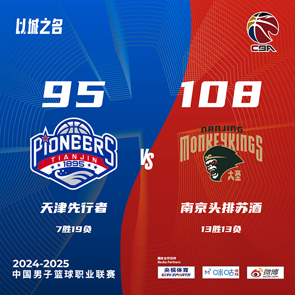 天津(7-19):詹姆斯34分22篮板6助攻,拉维特16分3篮板2助攻,时德帅14分8篮板,张云梦5分4篮板,林庭谦10分6助攻3篮板,哈姆雷特8分,王一方5分3助攻。