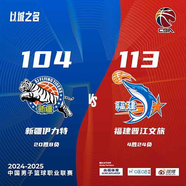 360直播吧讯北京时间1月10日讯 CBA常规赛,新疆主场迎战福建。新疆20胜7负排在联赛第四,福建3胜24负垫底。一开场,齐麟高效输出,邹阳内外开花还以颜色,次节皮特森连中三分将分差拉开到两位数,福建多点开花迫近比分,路易斯-金三分一度反超,新疆三分3连击打出12-3以63-57领先结束上半场,下半场,双方继续缠斗,比分始终紧咬,曾凌铉连中三分带队反超,末节福建稳扎稳打保持优势,新疆连投带罚苦苦追赶无果。最终,新疆爆冷主场104-113不敌福建。