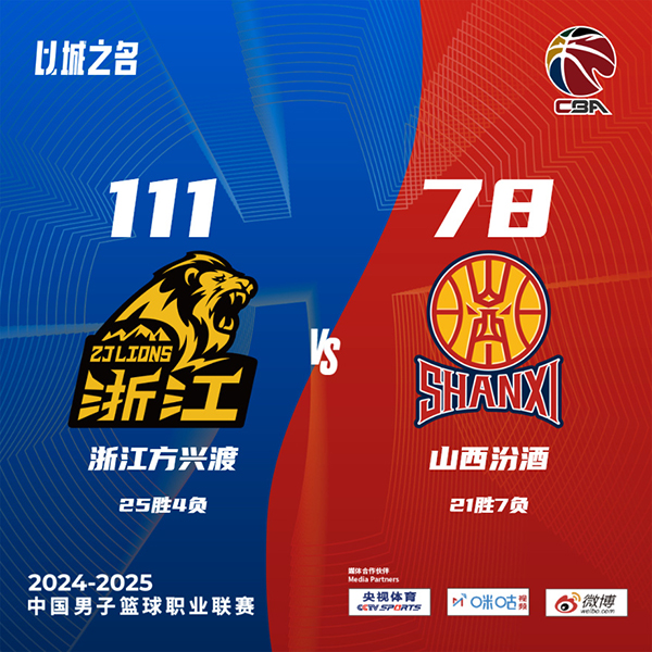 广厦(25-4):布朗38分4篮板2助攻、孙铭徽18分10助攻5抢断4篮板、胡金秋16分6篮板、赵嘉仁13分8篮板2助攻、卡尔顿10分12篮板4助攻、赵岩昊7分2篮板、奈特4分4篮板2助攻、朱俊龙3分、吴骁2分5篮板。