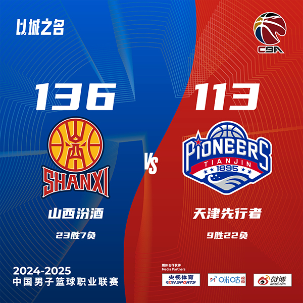 360直播吧讯 北京时间1月15日讯 CBA常规赛,山西主场迎战天津,山西目前22胜7负高居第3位,天津则是9胜21负排在第15位。比赛开始,双方都比较快得进入状态,天津全面皆兵,首发五虎除大卫-詹姆斯皆有得分入账,而山西则是古德温里突外投撑起进攻,山西首节领先4分,次节山西替补开始发力,张宁上来里突外投连砍12分,大卫-詹姆斯连续三分止血,但山西外线多点开花直接在半场拉开20分以上领先。下半场,拉维特苦苦支撑带队追分,但山西多点开花能回应,双方围绕着20分左右分差展开拉锯战,末节迪亚洛里突外投继续扩大领先,分差一度来到近30分,最终山西136-113轻取天津。
