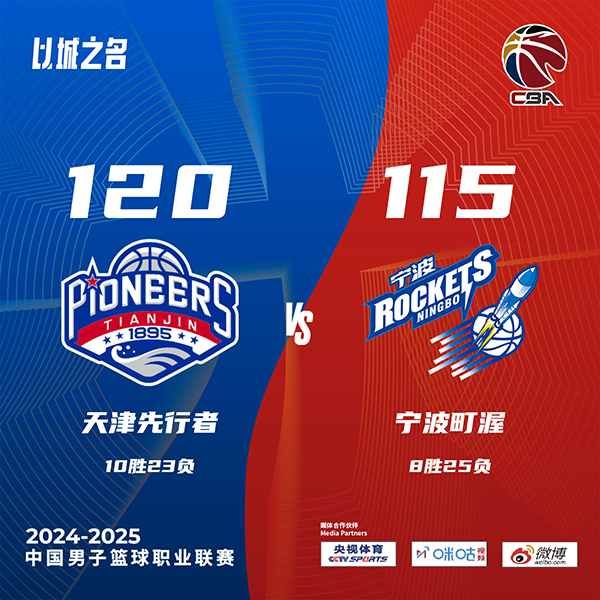 360直播吧讯 北京时间1月19日讯 CBA常规赛,天津主场迎战宁波。天津9胜23负排联赛第15,宁波8胜24负紧随其后。上半场,天津连中三分打出15-5的开局,宁波不断冲击内线连投带罚完成反超,此后双方陷入缠斗,比分交替领先,林庭谦连中三分带队打出10-2的攻击波占据主动,宁波连投带罚顽强追赶,半场战罢天津57-52领先宁波。下半场,天津占得先机取得两位数优势,宁波内外开花缩小分差,末节天津稳扎稳打保持优势,宁波采用犯规战术,乔丹-霍华德连中三分将分差迫近到只剩2分,林庭谦两罚全中。最终,天津120-115击败宁波,送给对手9连败。