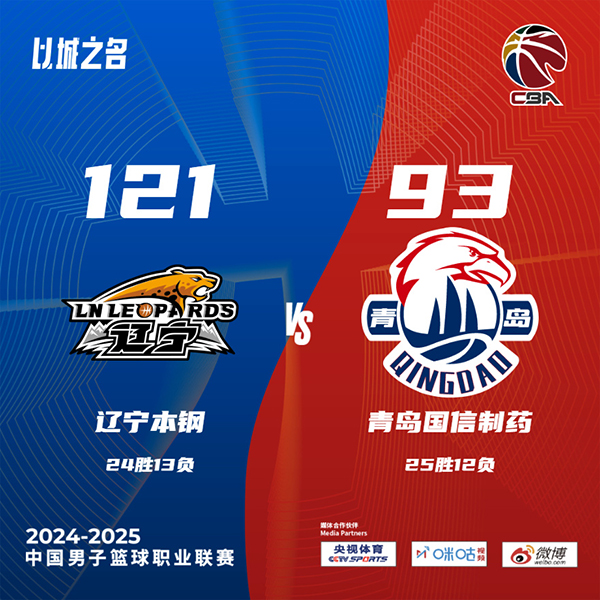 360直播吧讯北京时间3月7日讯 CBA常规赛,辽宁主场迎战青岛。辽宁23胜13负仅排在第9,青岛25胜11负高居第4。比赛开始,双方开场便陷入缠斗,比分咬得很紧,张镇麟连中两球后赵继伟三分穿针,辽宁完成7-0的攻击波取得领先,次节辽宁持续发力一度获得17分优势,青岛不断冲击内线频频得手迅速缩小分差,半场战罢辽宁63-55领先青岛。易边再战,辽宁稳扎稳打保持场上优势,双方围绕10分左右分差展开激烈争夺,末节辽宁越战越勇一举将优势扩大到20分以上,青岛大势已去无力回天。最终,辽宁121-93大胜青岛,主场过关。