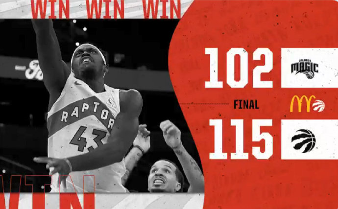 猛龙:西亚卡姆30分10板3助3断、洛瑞12分6板15助、贝恩斯8分16板、戴维斯12分4板、本布里12分2板2助、渡边雄太11分3帽