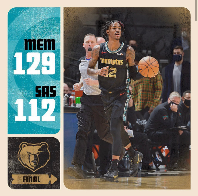360直播吧1月31日讯 NBA常规赛迎来西南区内战,近来攀升至西部第四的马刺迎战灰熊,后者在多场比赛延期后迎来近两周首战,首节一上来两队外线火热对飚,莫兰特极限拉杆打成2+1,首节结束后灰熊领先8分,次节回来后双方你来我往陷入缠斗,末段灰熊多点开花再次占据优势,半场战罢,灰熊继续领先7分。易边再战后莫兰特火力全开,本节他率队守住优势,三节结束后灰熊依然领先10分,末节决战,马刺追分乏力,最终灰熊129-112大胜马刺。