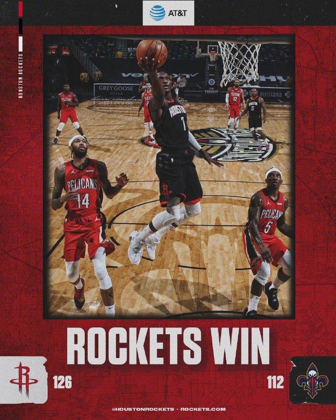 360直播吧1月31日讯 NBA常规赛,鹈鹕今日迎战火箭,前者两连胜后排在西部倒数第二位,而后者更是一波四连胜后来到西部第十的位置。比赛上来鹈鹕就率先进入状态取得领先,分差也是逐渐达到两位数,但进入次节火箭在进攻端突然爆发,单节爆砍48分实现反超并建立起18分的优势结束半场。易边再战,火箭始终掌握着场上的主动权,分差也是被继续扩大到二十分以上,比赛早早失去悬念,最终火箭大胜鹈鹕,迎来五连胜。