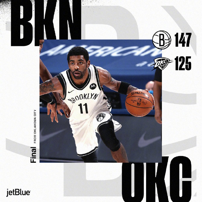 篮网(13-8):哈登25分10板11助、欧文25分5板7助、哈里斯20分2助2断、布鲁斯-布朗19分5板、杰夫-格林11分5板3助3断、佩里10分11板、鲁瓦乌13分5板3助、沙梅特11分、小乔丹10分8板2断。