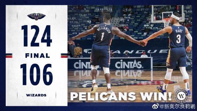 360直播吧1月28日讯 NBA常规赛奇才客场挑战鹈鹕,两队最近状态都表现不好,鹈鹕遭遇3连败,奇才2连败后已经在东部垫底,本场比赛威少缺阵。开场后鹈鹕抢得先机,随后奇才进攻断电,锡安内线连续拿分帮助鹈鹕在第一节建立17分领先。第二节回来小洛佩兹上来内线不断拿分,锡安也在内线强势回应,接着鹈鹕外线连中三分将分差拉大到20分,此后比尔再次站出来为奇才追分,上半场鹈鹕64-45领先。下半场回来两队大打对攻战,比尔第三节单节砍下24分帮助奇才略微缩小分差,但鹈鹕发挥稳定没有让奇才追上比分,最终鹈鹕124-106击败奇才结束3连败。