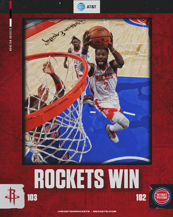 360直播吧1月23日讯 火箭前往客场挑战活塞,此役沃尔和伍德因伤缺阵。首节火箭迅速找到手感,考辛斯、塔克和泰特等连中三分,帮助火箭建立起两位数领先。不过,活塞之后进入状态,格兰特、艾灵顿等里外开花连续砍分,率领活塞在第三节成功反超比分。末节活塞未能延续手感突然哑火,火箭趁机重新夺回领先。比赛最后,格兰特连续砍分率领活塞追分争取绝杀机会,可惜最后一攻突破上篮超时无效。最终,7人上双的火箭以103-102惊险获胜,止住3连败颓势。