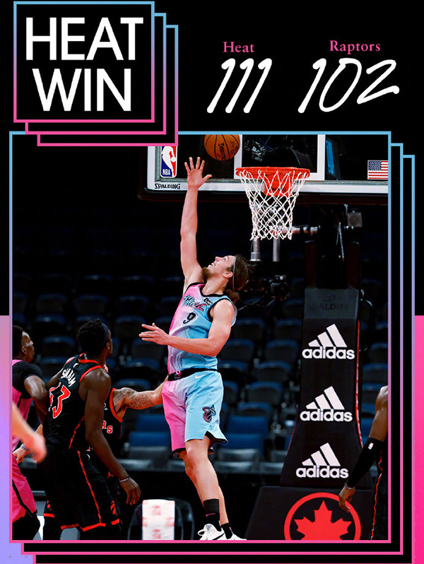 360直播吧1月21日讯 猛龙坐镇主场迎战热火,此役巴特勒、希罗等继续缺阵。首节邓肯-罗宾逊连中三分,帮助热火取得领先。但猛龙在次节找到外线手感给予回敬,在半场结束以58-56成功反超比分。易边再战,纳恩在第三节里突外投连续砍分,率领热火重夺领先。而猛龙在末节未能掀起追分攻势,反而陷入长达5分钟的得分荒,热火捉住机会进一步拉开比分。最终,6人得分上双的热火在客场以111-102击败猛龙,取得2连胜,同时终结了猛龙的3连胜。