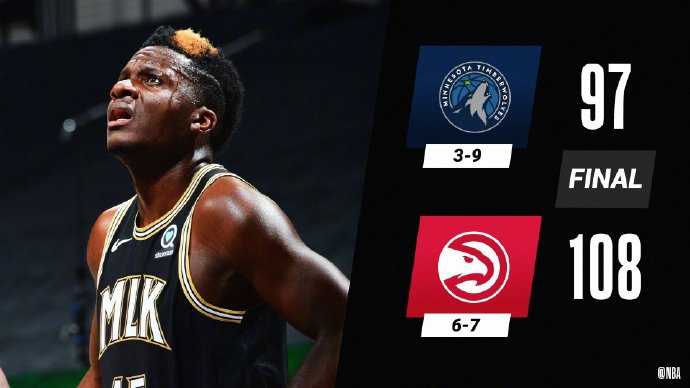360直播吧1月19日讯 NBA常规赛老鹰主场对阵森林狼,老鹰最近遭遇2连败,森林狼则是在西部垫底。开场后两队进入状态都比较慢,老鹰率先打出攻势取得领先,不过森林狼咬住比分。第二节在特雷-杨带领下老鹰一度将分差拉大到两位数,不过森林狼外线连中三分又缩小分差,上半场老鹰58-51领先。下半场刚上来森林狼就打出攻势追平比分,不过老鹰依靠科林斯和亨特的发挥建立起两位数优势,森林狼森林狼进攻不力,但老鹰也失误频频,特雷-杨受到犯规困扰只得多次下场休息,最后一节老鹰守住领先,森林狼未能翻盘,最终老鹰108-97击败森林狼结束2连败。