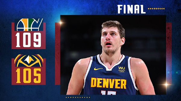 360直播吧1月18日讯 NBA常规赛爵士对阵掘金,爵士近来状态不错取得4连胜,开场后爵士外线多点开花早早取得10分优势,随后掘金依靠穆雷的出色发挥逐渐追上比分,第二节虽然爵士外线再次打出攻势,不过穆雷又是接连砍分完成反超,上半场掘金58-53领先5分。下半场回来两队多次在内线交手,两队多次打成平手,第四节爵士在米切尔的带领下再次取得领先,掘金最后连续进攻不中,最终爵士109-105力克掘金取得5连胜。