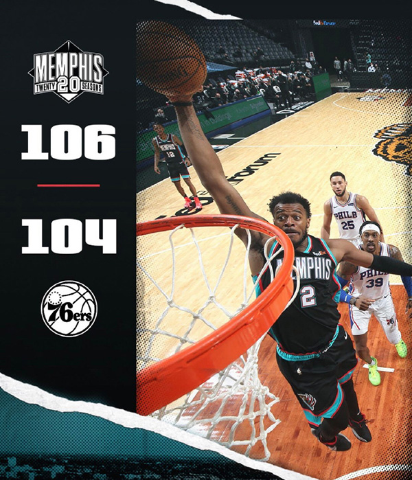 360直播吧1月17日讯 灰熊今日坐镇主场迎来76人的挑战,缺席了半个月的莫兰特本场迎来复出,76人这边恩比德则因右膝盖疼痛缺阵。首节比赛灰熊在开局慢热的情况下及时找到感觉并迅速追上比分并在第二节出迅速反超比分,76人前半节依靠西蒙斯9分3篮板2助攻的表现尚能咬住比分,但后半节集体哑火,灰熊在莫兰特的带领下送出10-3的进攻取得6分领先结束上半场。第三节灰熊很快便将优势扩大至两位数,76人仅仅抵抗了半节时间又一次末段哑火,灰熊节末再送10-2的攻势取得12分领先。然而末节米尔顿的突然爆发改变走势,他这一节独砍15分帮助76人不断蚕食分差并看到翻盘希望,而莫兰特最后一刻失误给了76人绝杀机会,不过哈里斯随后同样失误葬送良机。最终,灰熊险胜76人迎来4连胜。