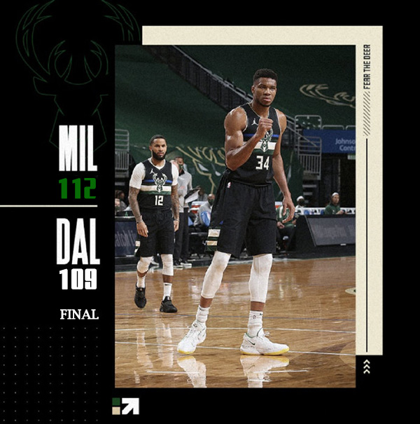 雄鹿(9-4):阿德托昆博31分9篮板,米德尔顿25分8篮板6助攻,霍勒迪16分3篮板5助攻,洛佩兹11分11篮板,波蒂斯8分13篮板,奥古斯丁7分2篮板。