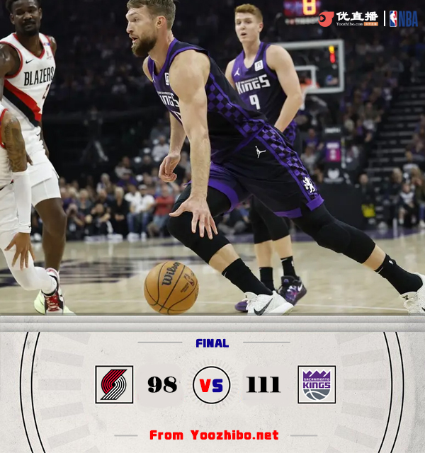 360直播吧10月29日讯 NBA常规赛,国王对阵开拓者,国王目前2连败还没取得一场胜利,开拓者上场比赛击败鹈鹕取得赛季首胜。开场后萨博尼斯和许尔特一内一外连连砍分帮助国王15-4开局,艾顿篮下连续打进止血,国王则不断造成犯规获得罚球机会。第二节上来开拓者发动反击将分差追到只差1分,德罗赞连续砍分帮助国王稳住阵脚并再将比分拉开。易边再战,福克斯和许尔特外线连续开火拿分,萨博尼斯在内线也接连得手,国王攻势连连将分差拉大到两位数,第四节国王三分依旧弹如雨下,场上分差来到20分开外,比赛失去悬念,最终国王111-98轻松击败开拓者取得赛季首胜。