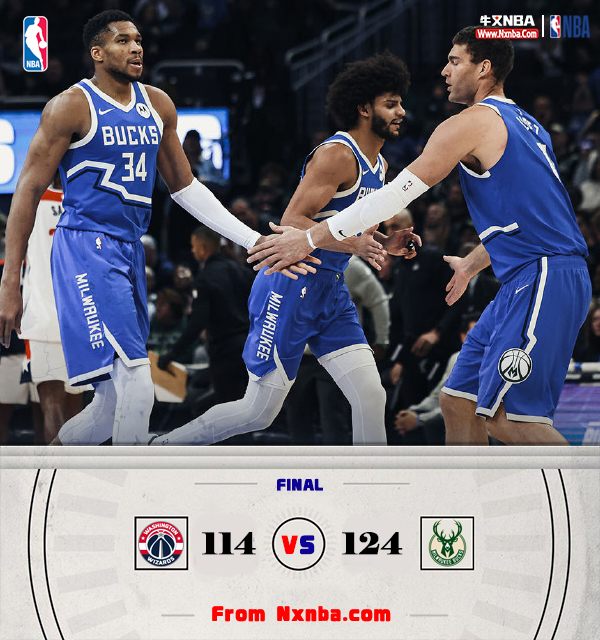 360直播吧讯北京时间12月1日讯 NBA常规赛,雄鹿今日迎战奇才,前者近来状态出色取得五连胜,后者则是惨遭13连败,此役字母哥复出,米德尔顿和库兹马缺战。比赛上来,雄鹿就展示出优势8-0完美开局,但之后他们的进攻突然哑火,奇才回敬一波13-2迅速完成反超,之后两队开始展开拉锯,不过雄鹿始终处于落后,次节双方开始展开对攻,雄鹿虽然有拉开分差的势头但奇才在瓦兰丘纳斯的带领下顶住了压力,半场结束时分差仅有5分;下半场回来,雄鹿一度将分差拉开到两位数,不过奇才并没有放弃,多次追回到个位数,末节奇才继续追分,比赛悬念保持到了最后,关键时刻普尔先是超远三分三不沾,随后又是连着两个踩出界失误,雄鹿没有再给机会力克奇才拿下胜利,迎来六连胜的同时也送给后者14连败。
