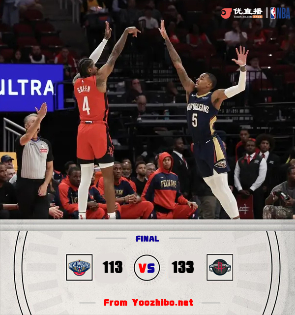 360直播吧讯 北京时间12月20日讯 NBA常规赛,火箭主场迎战鹈鹕,火箭目前17胜9负排在西部第3位,鹈鹕4连败后5胜22负西部垫底,本场比赛锡安和英格拉姆继续缺阵。比赛开始,火箭多点开花上来就发力,外线接连三分打出21-3超级攻击波一举奠定领先,除谢泼德外火箭首节出场球员皆有得分,火箭首节领先14分,次节双方展开对攻战,墨菲和穆雷有攻有传带队追分,但狄龙连中4记三分半场轰下20分给出回应,次节双方打成27平。下半场,杰伦-格林开始发力,接连冲击内线得分迅速上双,火箭顺势拉开20分以上领先,赫伯特-琼斯三分止血,随后杰伦-格林继续冲筐单节砍22分,三节火箭领先到20分,末节麦科勒姆接连造杀伤追分,但杰伦-格林再送暴扣回应,火箭牢牢掌握住十几分领先,最终火箭133-113轻取鹈鹕,送对手5连败。