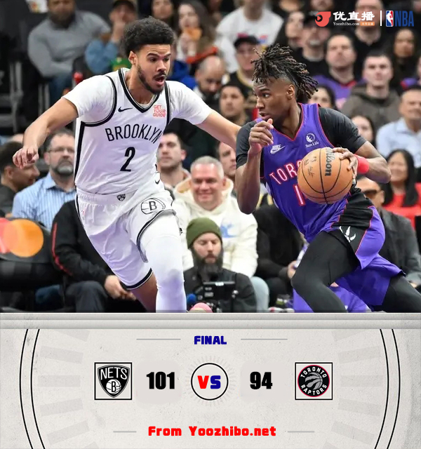 360直播吧讯 北京时间12月20日讯 NBA常规赛继续进行,猛龙主场迎战篮网,篮网近期遭遇三连败,目前10胜16负位列东部第11位,猛龙则苦吞五连败,7胜20负排在东部倒数第二。首节开打后双方短暂试探,西蒙斯连投带传串联球队,猛龙则在外线强势回应,首节战罢双方战成24平,次节回来,卡梅隆-约翰逊找到手感连续取分,末段猛龙进攻出现停滞,篮网多点开花逐渐占优,半场战罢,篮网领先6分。短暂休整后双方击鼓再战,迪克和阿巴基手感滚烫连中三分,猛龙一波10-2后来居上,三节结束后猛龙反超6分,末节上来,篮网轰出11-3攻击波实现反超,决胜时刻猛龙未能找到进攻感觉,最终篮网101-94逆转对手终结三连败,同时送给猛龙6连败。