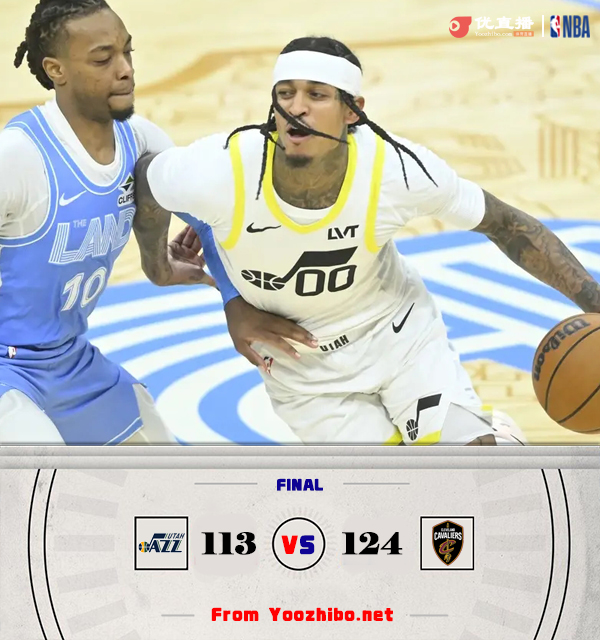 360直播吧讯12月24日讯 NBA常规赛继续进行,联盟领头羊骑士主场迎战爵士,骑士迎来4连胜,目前25胜4负稳居全联盟第一,爵士近期状态不错迎来连胜,但目前仅7胜20负位列西部倒数第二。赛前骑士主场篮筐出现问题开球时间延后,比赛恢复后双方互相试探,莫布里和加兰内外结合联手取分,马尔卡宁外线试投及时回应,首节结束时骑士领先2分,次节回来,双方延续火力继续僵持,爵士多点开花一度反超,加兰飚中压哨三分稳住局势,半场战罢,骑士依然领先4分。易边再战后双方拉开架势大打对攻,马尔卡宁和克拉克森连中三分,米切尔找到感觉外线回应,梅里尔手感滚烫单节贡献14分,三节结束后骑士确立11分优势,末节上来,爵士延续追分势头,双方分差一度只剩1分,骑士回敬15-5攻击波终结悬念,最终骑士124-113力克对手迎来5连胜。