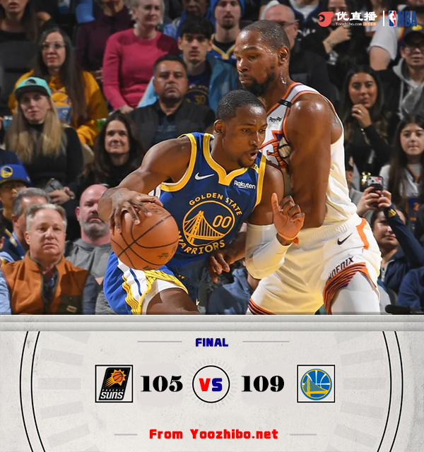 360直播吧讯北京时间12月29日讯 NBA常规赛,勇士主场迎战太阳。勇士3连败目前仅排在西部第十一,太阳西部第十。布克缺阵,库里和追梦迎来复出。比赛开始,比尔手感火热4投全中独得10分,库里和库明加联手带队高效拿分强势反超,杜兰特连续强解拿分,次节勇士连续失误,太阳利用防守反击轰出26-7的进攻狂潮取得两位数领先,追梦连中三分止血,库里压哨命中,半场战罢太阳65-61领先勇士。易边再战,勇士一波7-0的夺回优势,此后双方陷入缠斗,比分交替领先,太阳持续发力占据主动,末节勇士打出10-1反超比分,双方争夺陷入白热化,关键时刻杜兰特和库明加各自两罚全中,太阳连续打铁,勇士罚球杀死比赛。最终,勇士109-105力克太阳,结束了自己的3连败。