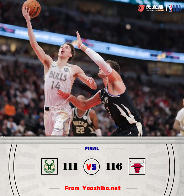 360直播吧讯北京时间12月29日讯 NBA常规赛激战正酣,公牛和雄鹿两支东部球队直接对话,此前因小腿伤势和非新冠疾病缺席4场的利拉德此役复出,字母哥因生病继续缺阵。此役一上来公牛外线率先开张,雄鹿开局状态慢热,米德尔顿和波蒂斯短暂止血,公牛多点开花确立优势,首节结束时公牛领先8分,次节回来,雄鹿逐渐找到进攻感觉,利拉德连投带罚不断杀伤,大洛联手米德尔顿外线续上火力,雄鹿稳扎稳打缩小分差,半场战罢,雄鹿仅落后2分。易边再战后两队进攻火力放缓,利拉德连投带罚串联全队,公牛找回状态及时回应,双方你来我往比分紧咬,三节结束后雄鹿反超1分,末节决战,基迪突然发力连续取分,公牛迅速夺回优势,决胜时刻雄鹿连续不中,公牛连中罚球锁定胜局,最终公牛116-111力克对手终结3连败。