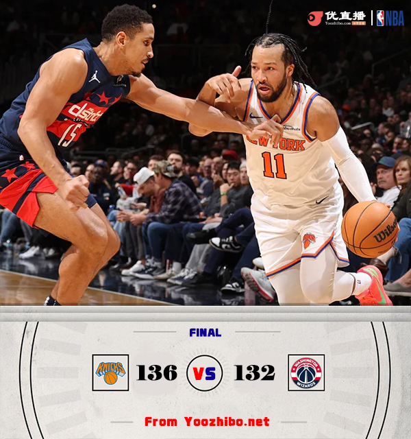 360直播吧讯北京时间12月29日讯 NBA常规赛今日继续开打,奇才坐镇主场迎战尼克,这场比赛是双方三天里两场比赛的首场对决。首节之争奇才抢开局以一波16-7占据互动,不过尼克斯很快做出应对回敬14-6的攻势追上比分;次节奇才面对近期取得6连胜的对手依旧不落下风,这一节他们和尼克斯一路纠缠势均力敌并打平进入下半场。休息归来尼克斯没能占到便宜不说还在拉锯战中落入下风,奇才在节末突然爆发送出15-2的攻势一度拉开两位数分差,不过好在尼克斯及时回暖末节开局8-2止住颓势,随后尼克斯一直紧追比分并依靠布伦森在读秒阶段连拿5分拖入加时。加时赛布伦森势不可挡连续拿分帮助球队占据先机,随后点球大战里稳定罚球守住优势。最终,尼克斯加时击败奇才迎来7连胜。