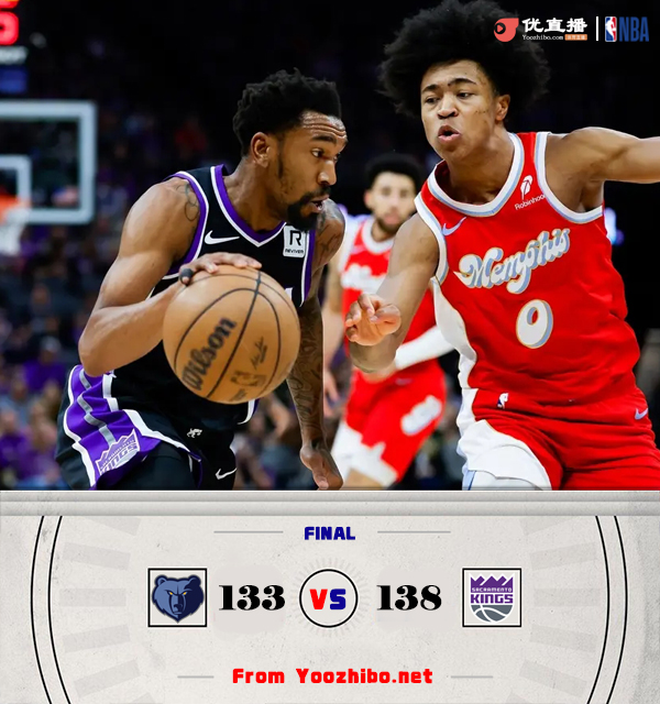 360直播吧1月4日讯 NBA常规赛,灰熊客场挑战国王。灰熊23胜11负,国王15胜19负。上半场,双方开场便大打对攻,国王里突外投拿分,灰熊多点开花给出回应,蒙克和莱尔斯手感火热,国王首节轰下46分领先灰熊14分,次节灰熊火力更猛,韦尔斯和小贾伦-杰克逊联手带队缩小分差,灰熊次节也砍40分,半场战罢国王76-72领先灰熊。易边再战,国王9-0扩大优势,韦尔斯单节11分帮助灰熊咬住比分,末节双方争夺陷入白热化,福克斯击中小皮蓬头部被吹一级恶意犯规,蒙克连得8分带队取得两位数领先,灰熊苦苦追赶无果。最终,国王138-133力克灰熊,主场过关。