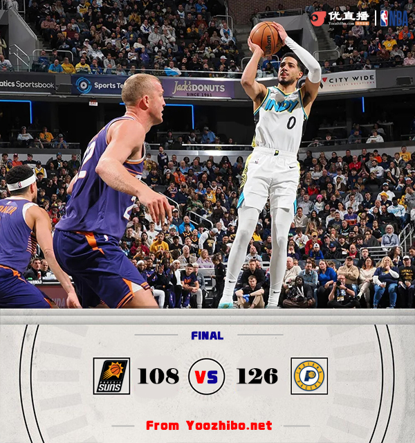 360直播吧1月5日讯 NBA常规赛,步行者今日迎战太阳,前者上场比赛战胜热火,后者则是遭遇三连败,此役比尔可以出战,泰厄斯-琼斯缺战。比赛上来,步行者就率先进入状态打出7-0的完美开局,比尔则是连拿五分帮助太阳止血,杜兰特和布克此后也是相继得分与对手保持拉锯,次节双方都没有获得拉开分差的机会,半场结束时场上战至56-56平;下半场回来,步行者的进攻彻底打开,单节轰下40分,分差也是达到了两位数,末节太阳也没有获得迫近比分的机会,最终步行者轻取太阳,送给后者四连败。