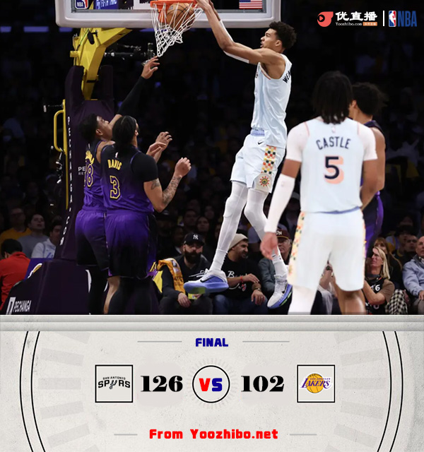 360直播吧讯北京时间1月14日讯 NBA今日继续开打,湖人今日坐镇主场迎战马刺。湖人此前因为洛杉矶大火的原因两个主场延期首节之争马刺开局2分半里一分未得导致被动开局,湖人则在里夫斯的连续拿分中取得7-0的开局;不过随着比赛深入马刺渐入佳境,文班亚马和瓦塞尔联手抢分帮助马刺后来居上反超比分;次节双方对攻大半节的时间,不过湖人更胜一筹在末段送出8-0的攻势拉开两位数分差并奠定半场9分领先。休息归来马刺迅速做出回应,凯尔登第三节的压哨三分让双方重新回到同一起跑线;末节决胜马刺彻底接管比赛,马刺在文班亚马并没有太大发挥的情况下仍然轰出20-7的攻势直接拉开两位数分差奠定胜局。最终,马刺客场掀翻湖人,并送湖人3连败。