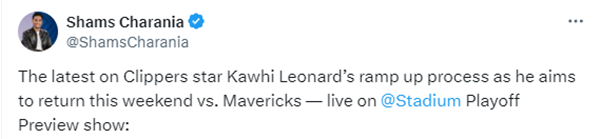 快船和独行侠系列赛G1将在4月22日凌晨3点30分开打,这意味着小卡伤后连续休息21天,他应该能够为季后赛准备好了。