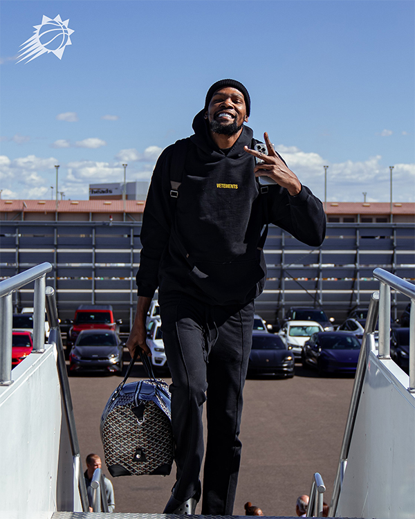 太阳奔赴达拉斯:杜兰特开怀布克冷峻,三巨头领衔冲击七连胜之旅