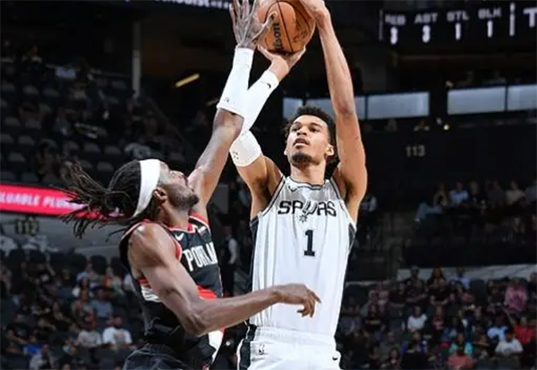 第一节,艾顿在场上的表现不错,在反击中吃饼暴扣,外线迎着文班的补防轰进三分,进攻端继续吃饼扣篮,首节拿到9分,不过这一节开拓者27-33落后6分,马刺多点开花,但文班亚马2投1中拿到3分,迎着防守轰进三分,防守端2抢断1盖帽十分出色。