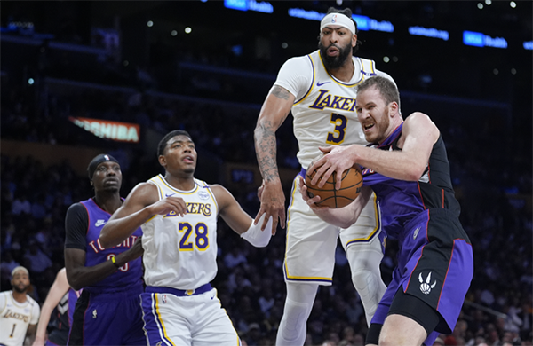 主场对阵猛龙,上半场浓眉的效率很高,而且频频造杀伤罚球得分,半场7投5中、罚球10中8独砍19分3篮板,期间浓眉开场命中三分,第二节持球欧洲步突破暴扣,扛起湖人的进攻大旗,不过半场打完,湖人53-55仍落后2分。