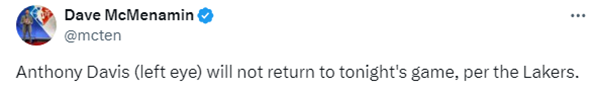 湖人艰难时刻:浓眉8投22分后左眼受伤 戳眼之痛退赛打击大