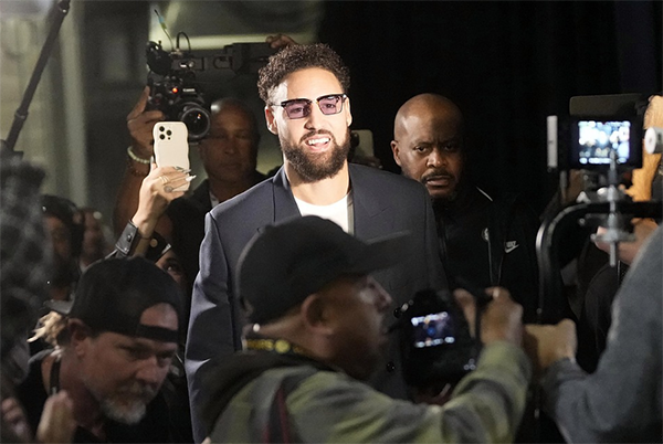 库里讲话取消添波折,克莱抵勇士球馆受热烈欢迎成焦点
