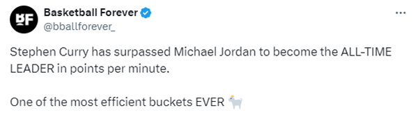 另外据美媒报道,库里已经超越乔丹成为NBA历史上每分钟得分最多的球员。
