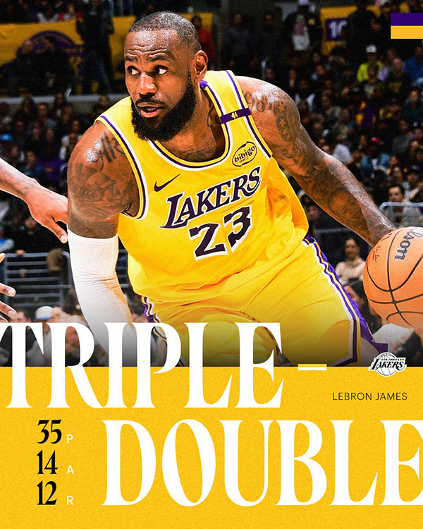 湖人主场128-123击败灰熊从而豪取主场6连胜,詹姆斯全场22投13中、三分7中4拿到35分12篮板14助攻,上半场拿到20分,末节贡献9分5助攻,关键时刻又挺身而出,老詹又轰下30+三双,多次暴扣点燃球馆,带队捍卫主场,一战又狂刷历史纪录。